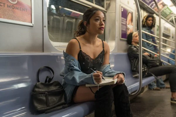 Among its many notable qualities, what I enjoyed most about “Someone Great,” though, was that each woman in the film got a happy ending, although not in the way they had hoped or expected. Jenny goes to “finish” her relationship with Nate by writing a poignant entry in her journal on the subway (this shot of Rodriguez writing on public transportation is reminiscent of the early seasons of “Jane the Virgin” when Jane would pull out her journal on the bus, and made me smile) and visiting the fountain in Washington Square Park that was her and Nate’s “spot” throughout their time together. Jenny falls asleep and dreams that Nate meets her there and confesses how badly he screwed up by breaking up with her. But of course, it’s only a dream, meaning that something or someone that was present for so long isn’t always what’s best for us. Blair goes with Erin to tell her girlfriend that she loves her and wants to be with her, and earlier in the film, Blair breaks up with her boyfriend, freeing herself from the idea of what she thought her life should be.