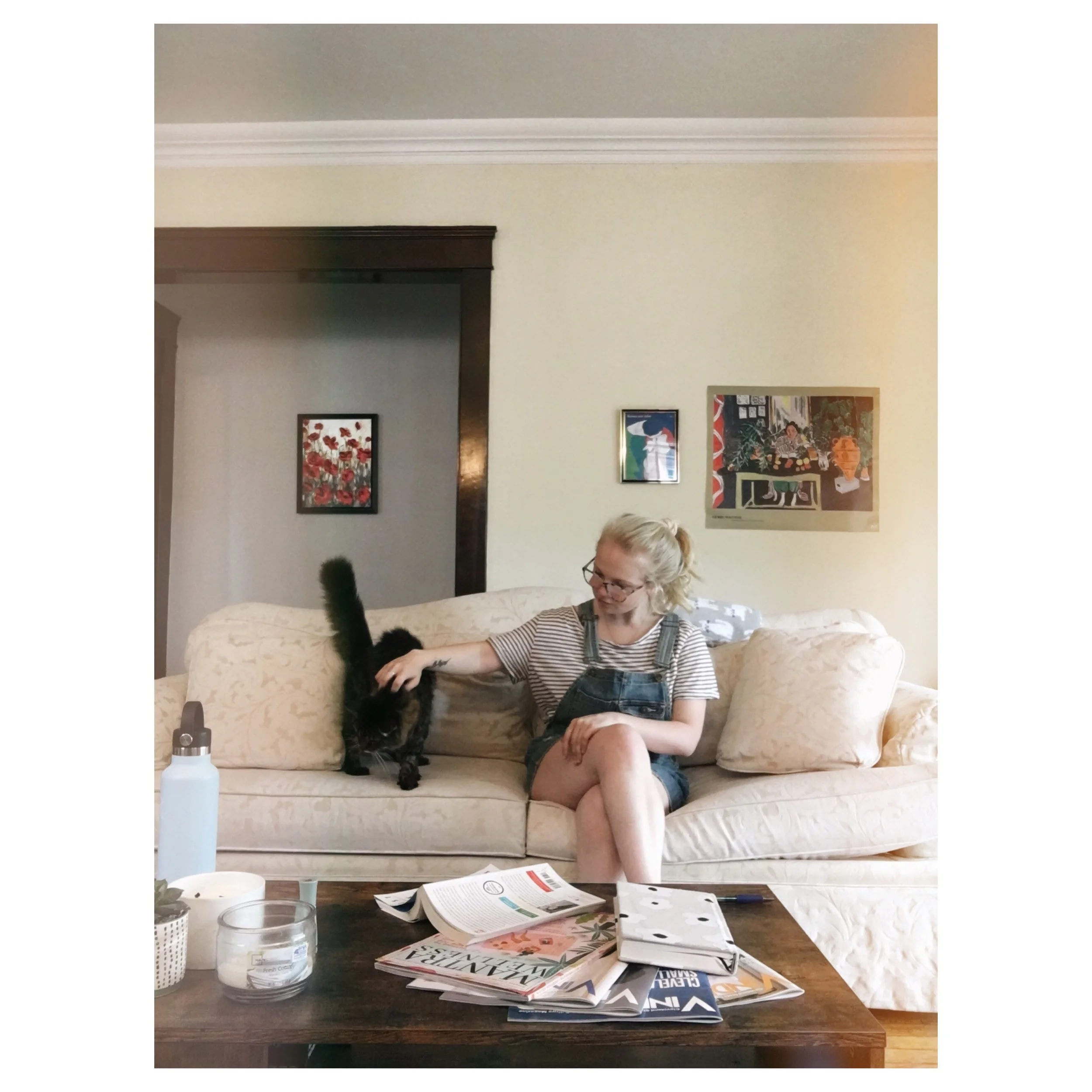 By night three I was starting to go a little stir-crazy, not only from the heat but from not being around people. Needless to say I showed up to work half an hour early last Thursday just so I could socialize with my coworkers. I missed them. My job requires me to be outgoing and personable, so I see all of that off time as a blessing now, since I got to “recharge my batteries.” I’ve also been manifesting the resulting solitude of my roommate’s absence into decorating the living room (with her permission, of course) — in the few months I’ve lived there the walls have been bare. But now that the space has more personality and color, I find that leaving the house is more of a challenge.